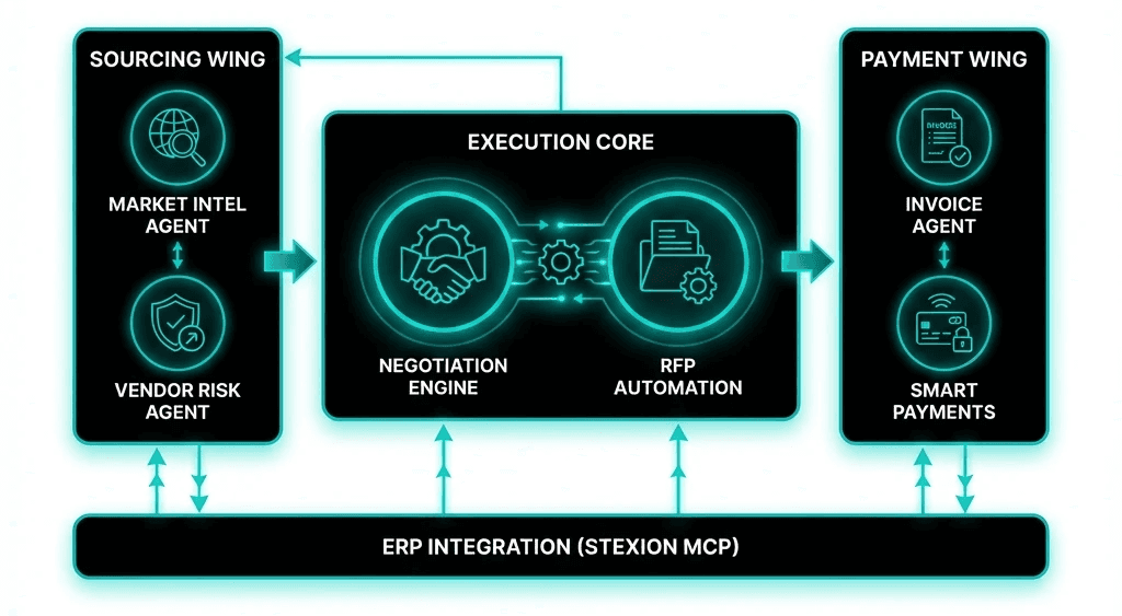 For decades, S2P has been reactive. A human realizes a need, raises a requisition, and waits. In volatile industries like semiconductors, this latency is fatal. Stexion transforms this fragility by evolving S2P into an active defense system. Our agents monitor geopolitical risks and substrate availability in real-time, effectively turning your ERP from a system of record into a System of Anticipation.